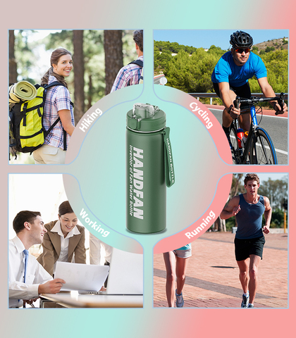 Botella de agua de fitness personalizada con tapa de Asa Frasco de vacío de acero inoxidable Botella deportiva Ventilador para agua hirviendo Envío gratis